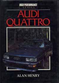 Audi Quattro by Alan Henry Available for $55.00, Contact Us to Purchase Published in 1984 by Arco Publishing in NY ISBN 0 668 06144 8 156 pages, B/W, some great Rally car photos 9 3/4 X 7 inches Chapters: Four Wheel Drive Predecessors Competition Work Quattro Development Making the Audi Quattro (view of the factory assembly line) Audi Quattro- on the road The Audi 80 Quattro The Quattro Sport The Treser Quattro The Quattro triumph in the R.A.C. Lombard Rally The Quattro in the USA