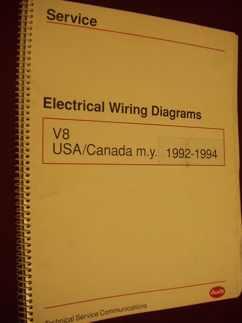 1992-94 Audi V8 WIring Diagrams, Spiral bound Book, W42 WD Book AU